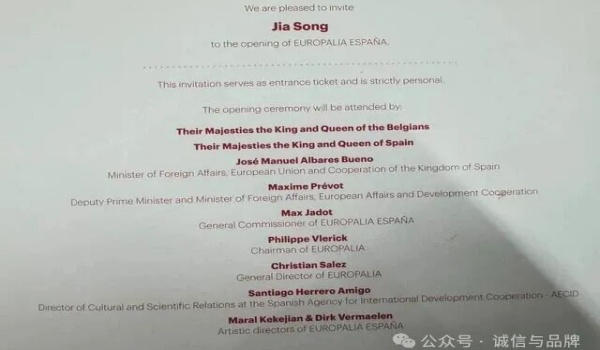 主编changqing 诚信与品牌 2025年10月13日 21.45 北京Their Majesties the King and Queen of the BelgiansTheir Majesties the King and Queen of SpainJose Manuel Albares BuenoWe are pleased to inviteJia Songto the opening of EUROPALIA ESPANA.